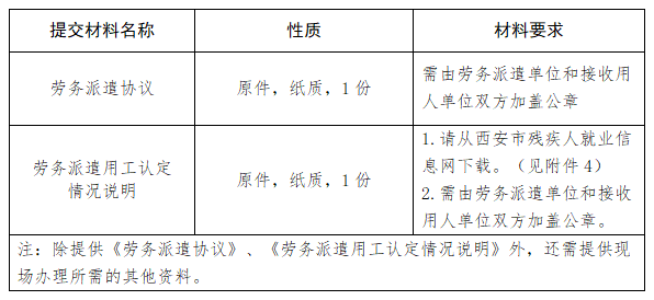 (三)以劳务派遣方式安置残疾职工就业的用人单位现场办理所需资料