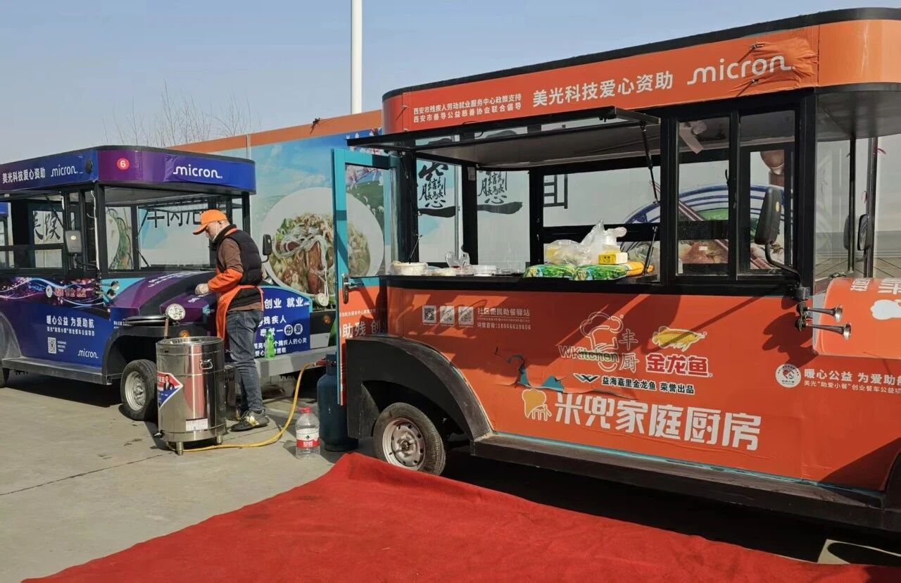 此次投用的首批20辆餐车,由美光半导体(西安)有限责任公司支持提供,并依托金龙鱼兴平央厨供应体系体系,由米兜家庭厨房深度运营联动社区物业驻点场景,实现“从田间到餐桌、从产品到就业”全链路闭环。