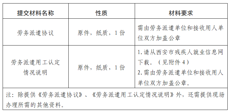 (三)以劳务派遣方式安置残疾职工就业的用人单位现场办理所需资料