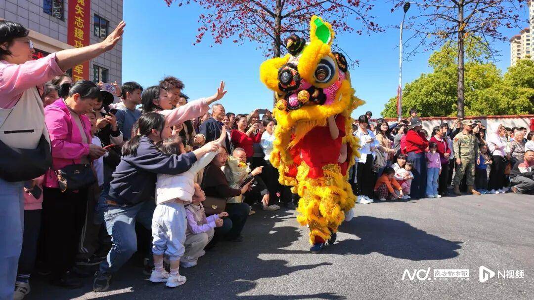 欢送典礼现场,锣鼓喧天,醒(xing)狮助势,处处洋溢着喜(xi)庆而庄(zhuang)重(zhong)的空气。