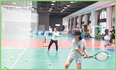 市民在贵州省贵阳市“新印1950”文创街区里的网球场锻炼。“新印1950”曾是贵州新华印刷厂的老厂区。